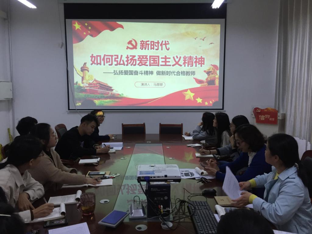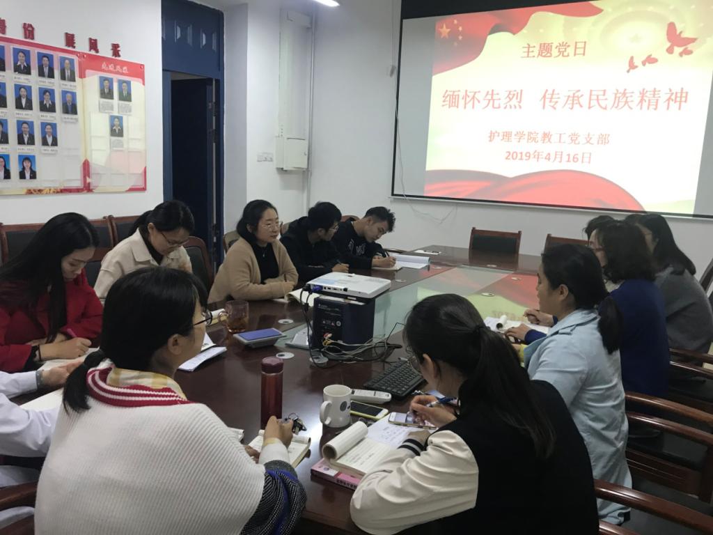 4月16日下午,护理学院召开4月主题党日和党课学习活动,学院全体教职工党员和学生党员参与活动,会议由护理学院教工党支部书记马翠翠同志主持。首先,在徐红同志的带领下,进行了“缅怀先烈 传承民族精神”主题党日活动,同志们集体观看视频学习了“时代楷模张玉滚”的优秀事迹。为了“改变山里娃的命运,托起大山的希望”,张玉滚老师凭着内心的那份执着,扎根伏牛山深处黑虎庙村小学17年,把自己最美的青春年华奉献给深山的教育事业,为我们树立了新时期岗位标兵的楷模,是我们大家学习的榜样。随后,在马翠翠同志的带领下,同志们集体学习了“新时代如何弘扬爱国主义精神——弘扬爱国奋斗精神 做新时代合格教师”党课。爱国主义是中华民族精神的核心,是中华文明源远流长的内在精神动力,也是千百年来中国人民团结统一、自强不息的精神支撑,我们要用实际行动强化爱国的责任与担当。最后,同志们通过讨论交流,纷纷表示要不忘初心,砥砺前行,爱岗敬业,为学院发展贡献自己的力量!