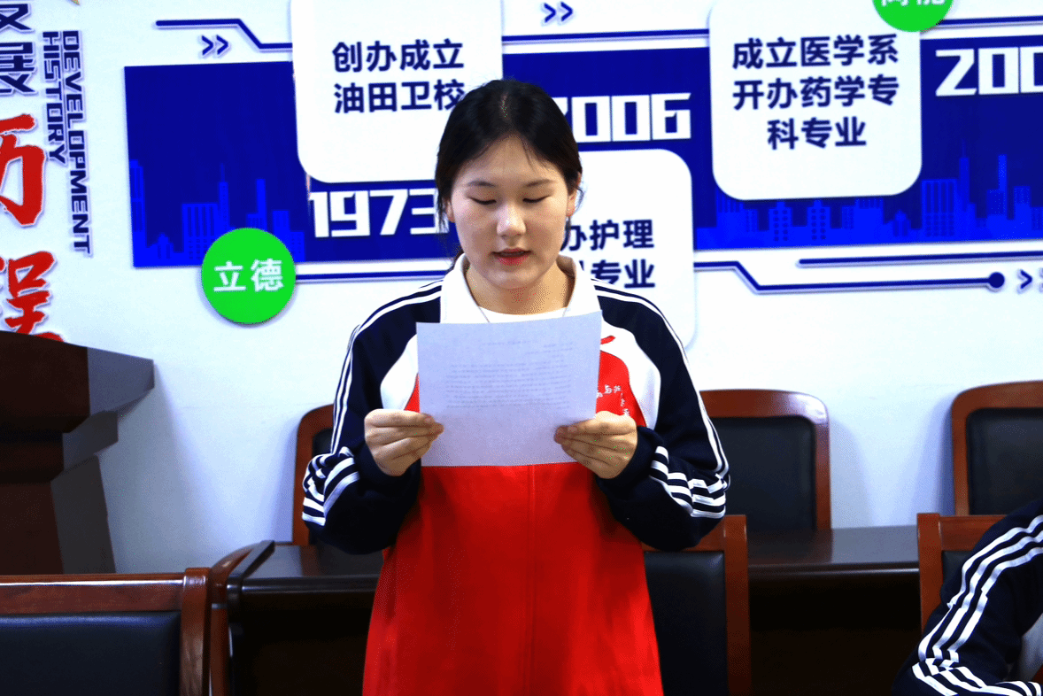 在研讨交流环节,谢清娜、袁怀志两位学生党员围绕“党的二十届四中全会精神”这一学习主题,结合自身学习实际作交流发言,探讨如何学习贯彻党的二十届四中全会精神,聚焦党建引领,推动学院学生工作提质增效的实践效能。