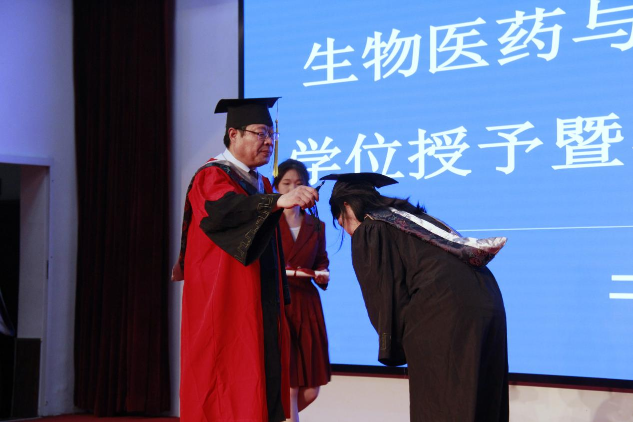 典礼在毕业纪念相册的视频中拉开帷幕。教师代表孙玫表示,希望同学们牢记“立德尚能,仁爱致行”的院训,将至善作为人生追求,为我国医疗健康服务事业贡献自己的力量。