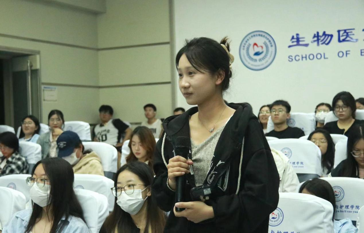 徐志鹏等四位2020级优秀实习生代表分别针对实习前的准备、实习期间的亲身经历和实习的收获等几个方面展开详细讲述,提醒同学们要认真对待实习中的每一项操作,不断反思总结,为未来就业打好坚实基础。2020级贾雨欣学姐从护理技能大赛前期准备、大赛流程、备赛与实习的兼顾三个角度出发,为同学们讲解了护理技能大赛的注意事项。现场同学们踊跃提问,气氛热烈。