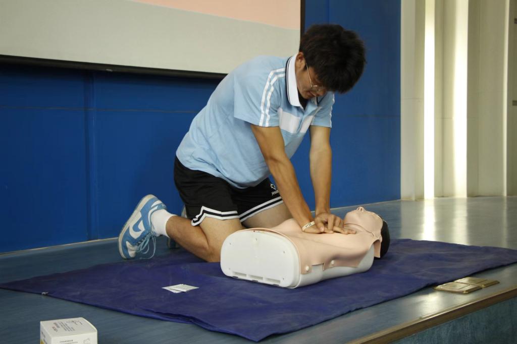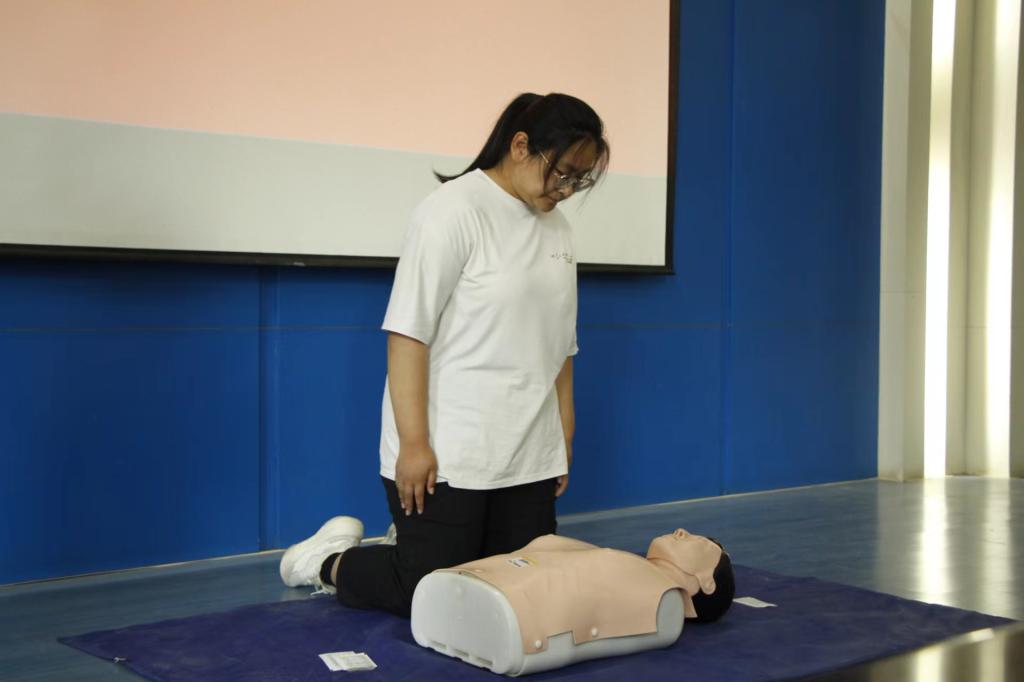 马翠翠老师为大家讲解了常用急救知识,展示了部分常用急救医疗物品。参训师生上台实践,学习了现场心肺复苏、伤口绷带与三角巾包扎技巧、医疗物品操作技巧等内容,进一步掌握了急救第一现场的应急技能。