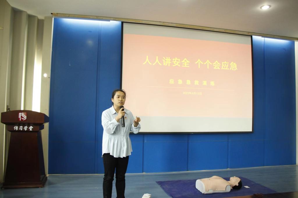 为提高师生应急安全急救意识,响应国家安全生产月的号召,6月13日下午,我院于传习学堂开展“人人讲安全、个个会急救”应急急救演练。由护理系主任马翠翠主讲,化学工程学院学生和我院师生代表参加。
