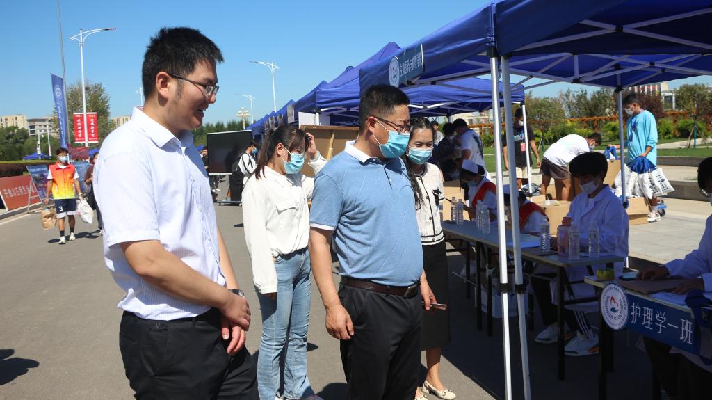 我院领导高度重视迎新工作,执行院长赵森、党总支书记殷丽带队来到报到处,了解新生报到和迎新工作情况,鼓励学生志愿者再接再厉,认真工作;勉励新生不负青春,积极进取,努力成为优秀的医护工作者。新生和志愿者们感受到来自学院的关怀和温暖。