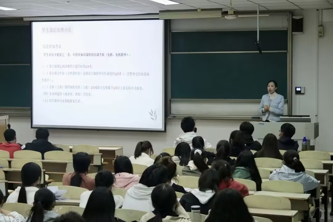武利敏老师重点讲解了学生安全教育及管理暂行规定、学生违纪处分办法等文件内容,教育引导学生不断增强“规则意识”、“责任意识”和“自律意识”,提高自身文明修养,促进优良班风、学风、考风的营造与维持。各班级也学习了学生素质综合测评实施办法、奖学金评定办法等文件。