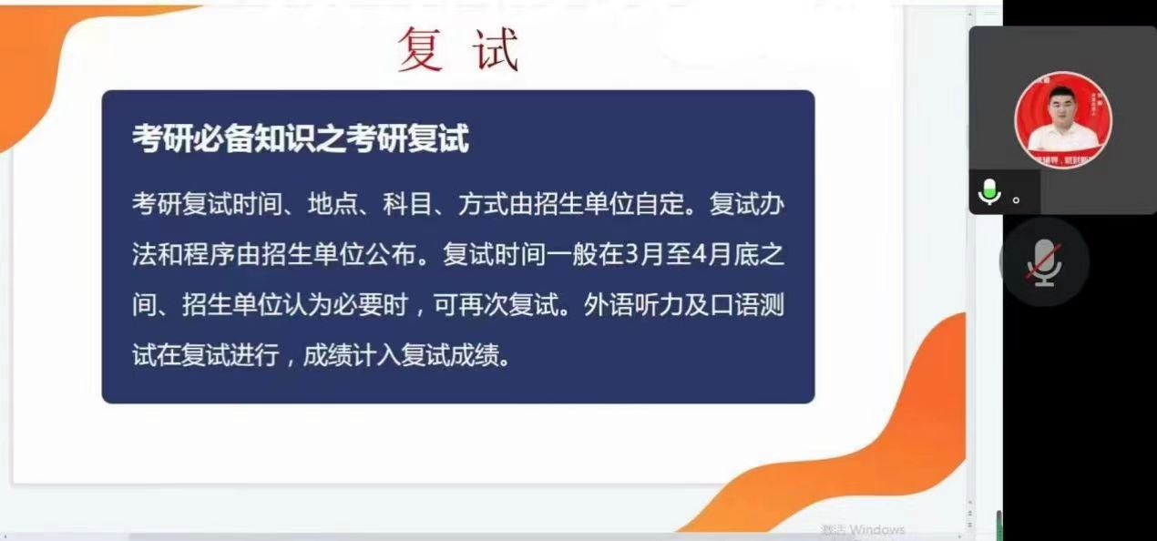为帮助2023届考研学生充分把握录取政策,提前做好复试和调剂相关准备,3月13日晚,我院邀请刘毅老师线上为2023届考研学生开展线上指导。