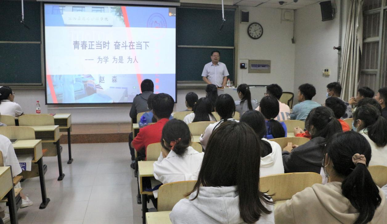 赵森院长开学第一课的主题为“青春正当时,奋斗在当下”,他向新生介绍学校和学院的发展历程,阐述学院卓越护理人才培养理念,勉励同学们做一个心性光明、行为努力、目标远大的医护工作者。殷丽书记以“一起做对选择题”开讲,寄语2022级新生爱学校、爱生活、爱自己,坚定执着、吃苦耐劳,合理规划大学生活,不断提高专业能力和综合素质。