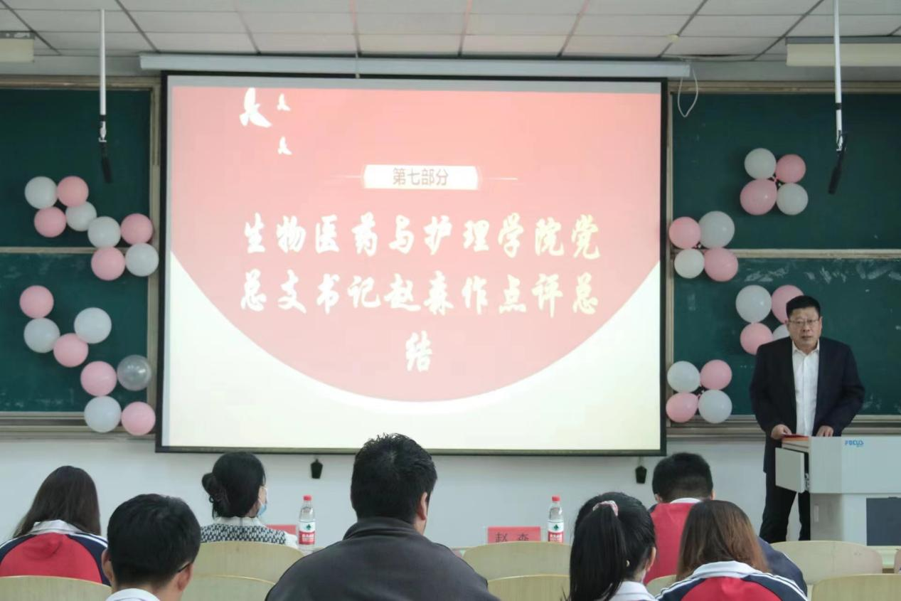 学院党总支书记赵森充分肯定了学生社会实践取得的成果,就将社会实践继续深入开展向学院学生提出三点要求:一要以饱满热情投身服务社会中,践行院训“立德尚能,仁爱致行”,将个人行动融入健康中国的实践中;二要坚持不懈,把实践活动作为攻坚克难的新课题,突破创新、劳有所获;三要总结经验、不断进步,以实践促思政,坚定理想信念。舞蹈《平凡天使》为社会实践表彰大会画上圆满句号。