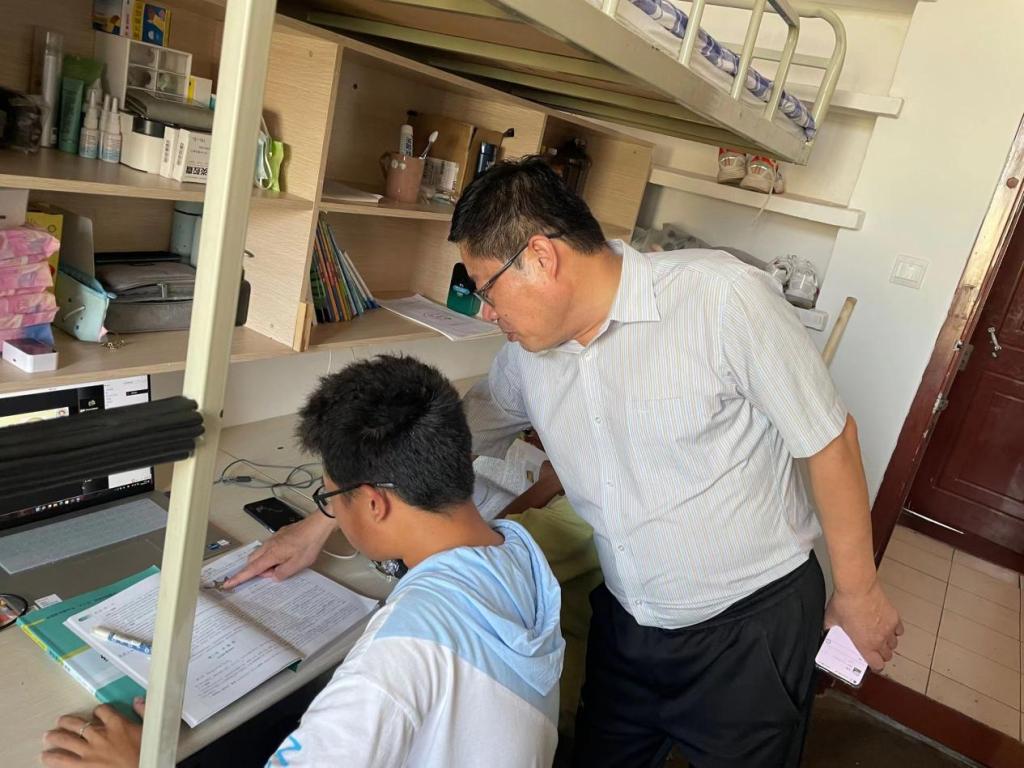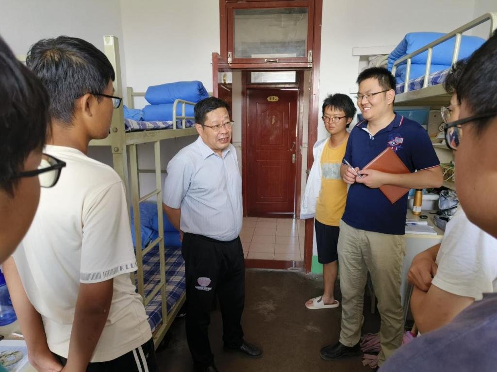 在学生宿舍,赵森书记了解了学生线上听课的具体情况,检查了宿舍卫生,在课间休息时与2022级学生亲切交谈,详细了解宿舍网络、教师上课质量等问题,解释疫情防控形势下开展线上教学的必要性,嘱咐同学们做好个人防护,保持宿舍通风,维护好宿舍环境。
