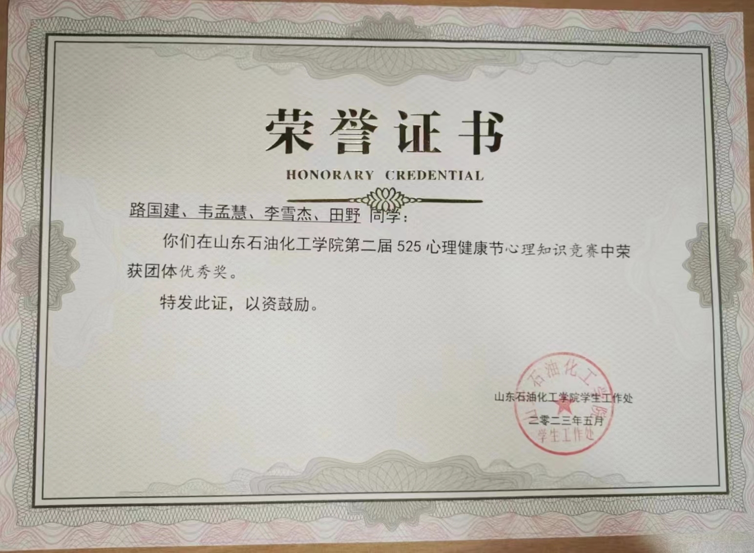 心理知识竞赛团体优秀奖-路国建、韦孟慧、李雪杰、田野