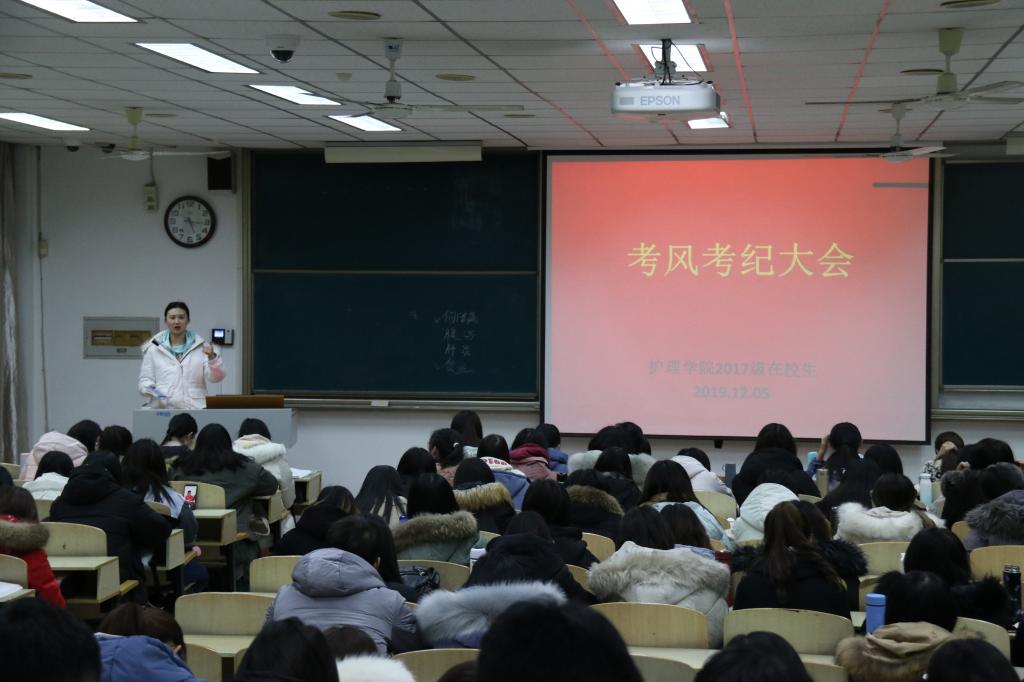 为了严肃考风考纪,营造诚实守信的良好氛围。我院分别12月5日、11日,于4210、4207、3202教室召开17、18考风考纪大会。大会由辅导员李文欣、武利敏主讲。