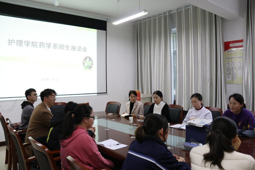 为加强学生与授课教师之间的交流。11月5日下午,我院于党员活动室召开药学系座谈会。辅导员武利敏,药学系老师徐红、刘欣,基础医学系老师孙玫及17、18级学生代表参加此次交流会。