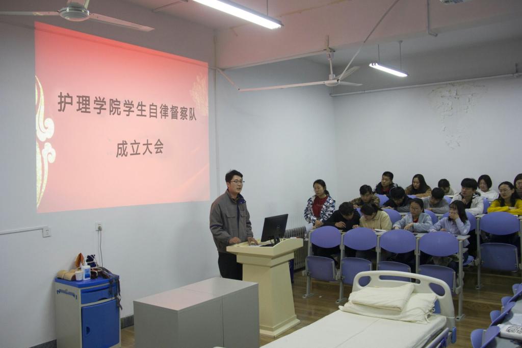 为响应学院“以思想政治教育筑基,以安全文明校园建设为底线”的工作思路,创建健康向上、积极进取的书卷校园。3月19日下午,护理学院于学院501教室举行“护理学院学生自律督察队”成立大会。护理学院学工办主任于淼老师、团总支书记武利敏老师及全体班委、相关负责人参加本次大会。