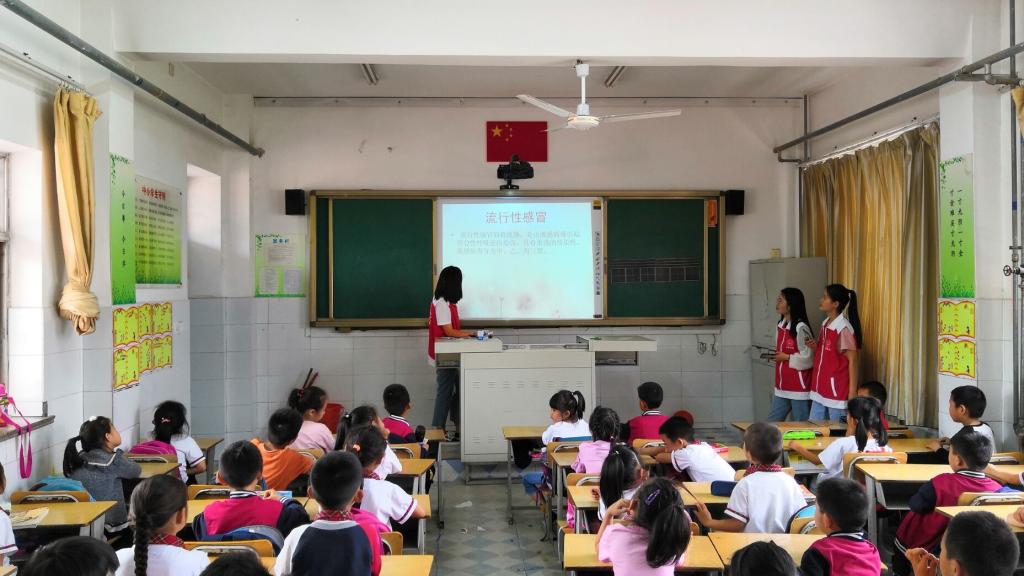 活动伊始,志愿者先向同学们提出“传染病的类型有哪些”等相关问题,紧接着又向其分别讲述了流行性感冒、水痘、风疹、流行性腮腺炎、手足口病等常见的传染病的来源及其预防措施,并叮嘱同学们在日常生活中要提高健康卫生意识,勤洗手、勤更衣,重视自身卫生安全。