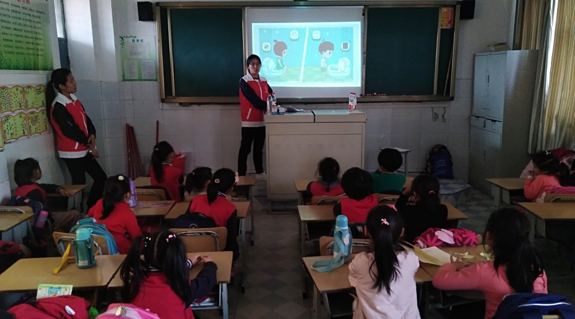 志愿者们以卡通版演示文稿与小游戏相结合的形式,为在场同学们着重讲述自我保护的重要性及如何做到自我保护等问题。通过讲述母亲如何孕育生命,在向其科普自己如何成长发育的同时,使其深刻体会到了为人父母的不易。小学时期是人们身体健康,发育的重要时期,针对这一身心特点,志愿者们与同学们在课下进行了接力跑、套圈接力、沙包夺分等户外运动,以此培育其团体意识与竞技意识,促进其全面发展。