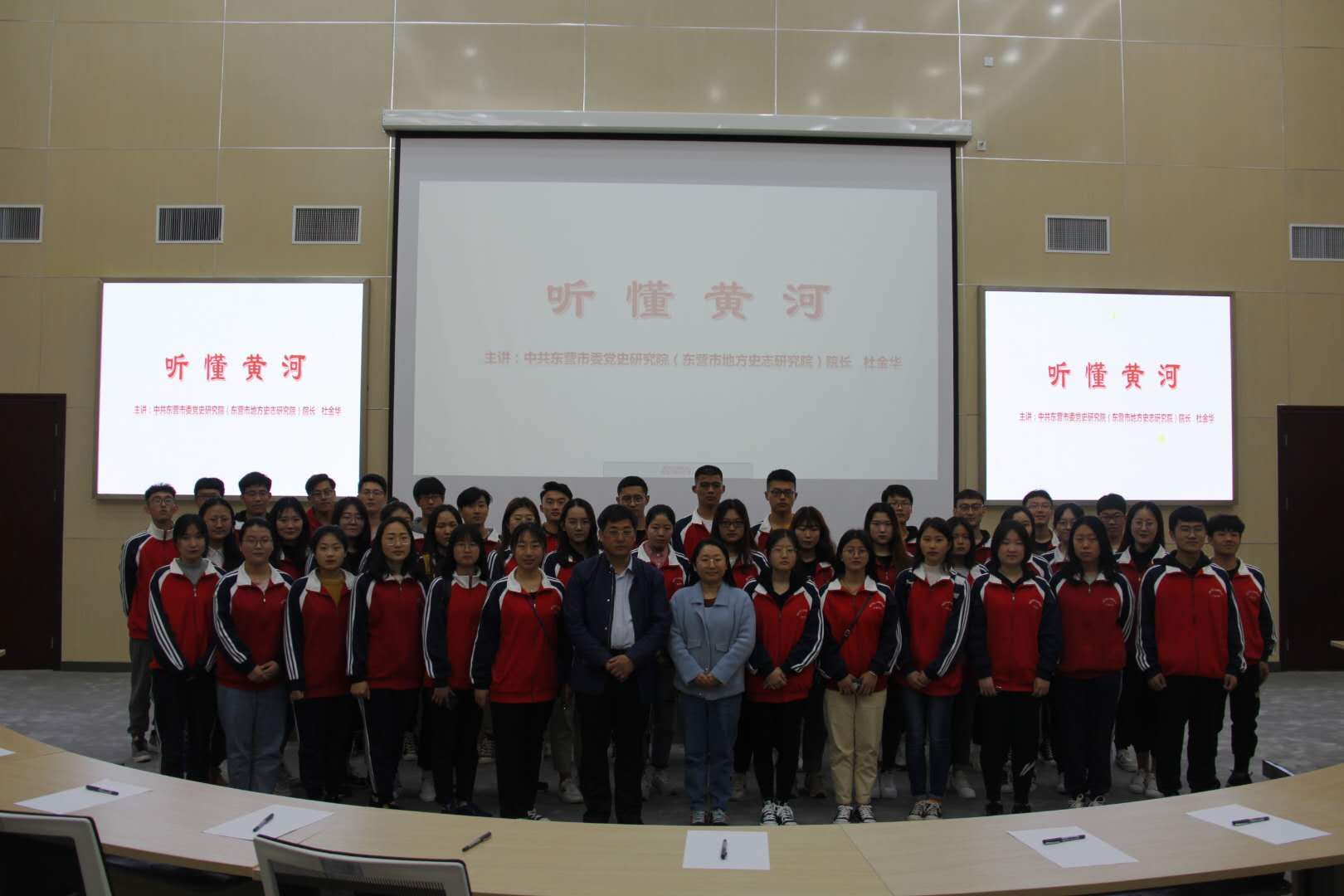 本次学习分为两部分:参观馆内展区与参加《听懂黄河》研学活动。上午9时,学院师生到达黄河文化观,参观展区,详细了解黄河沿岸区域的生态环境、人文风情与历史变革,学习革命英烈的感人事迹;随后,师生一行参加由中共东营市委党史研究院杜金华院长主讲的《听懂黄河》,并交流讨论,杜院长提出黄河文明是中华文明的渊源,我们应该牢记黄河文化,传承黄河文化,坚定民族自豪感和文化自信心。