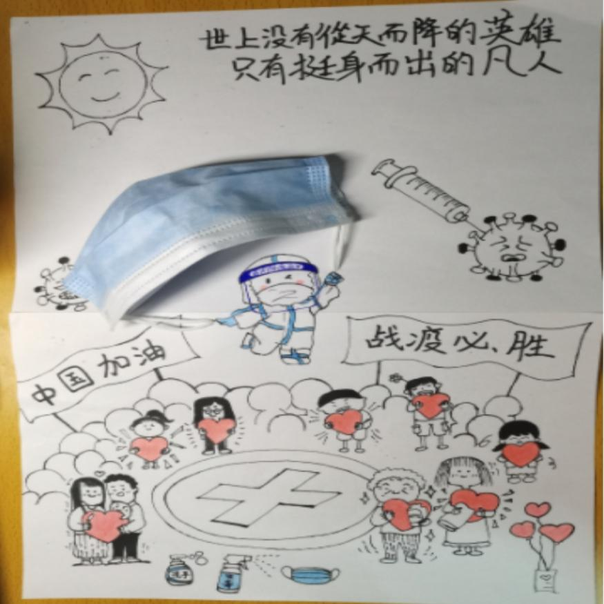 学院通过公众号下发通知,积极宣传推广;采用线上投稿的形式,收集到形式多样、丰富多彩的防疫作品近50份,其中包括书法、绘画、手工作品、抗疫宣传视频等。