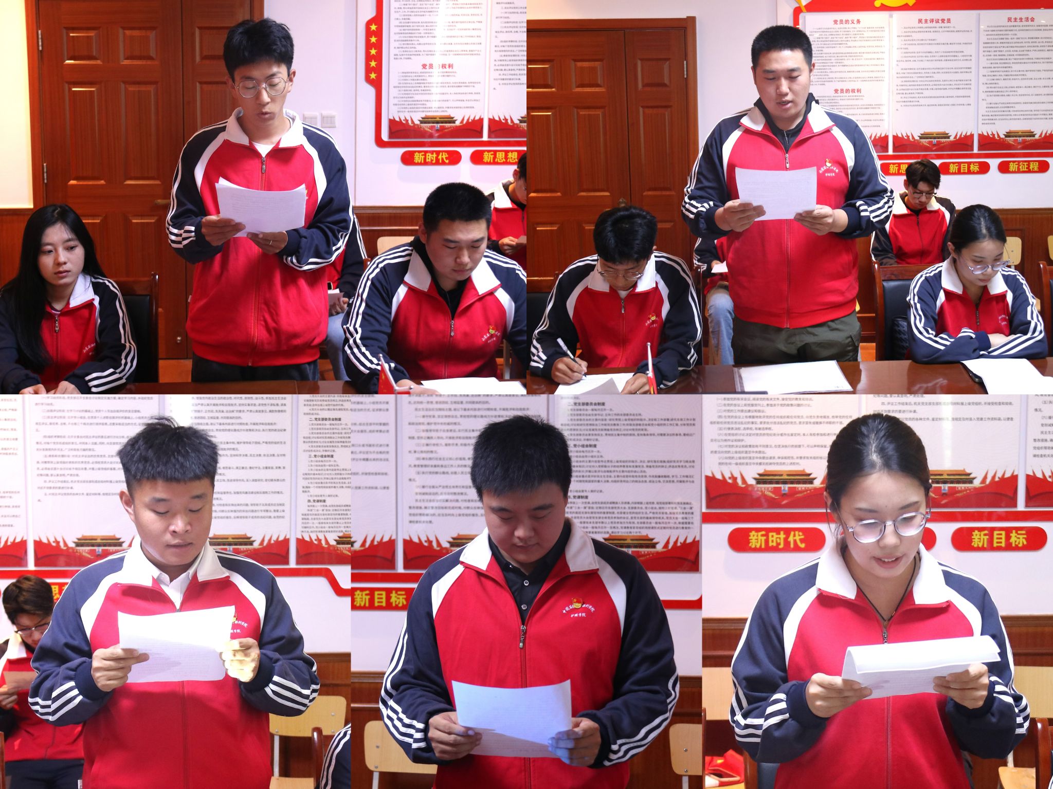 徐志鹏等五名预备党员依次向党组织汇报自己在预备期间的思想认识、学习工作以及党性修养等方面的成长与进步,入党介绍人分别介绍申请人在预备期间的基本情况,并对其能否转正表明意见。随后,学生党支部书记武利敏宣读支委会报告,经讨论表决,大会同意我院5名预备党员按期转正。