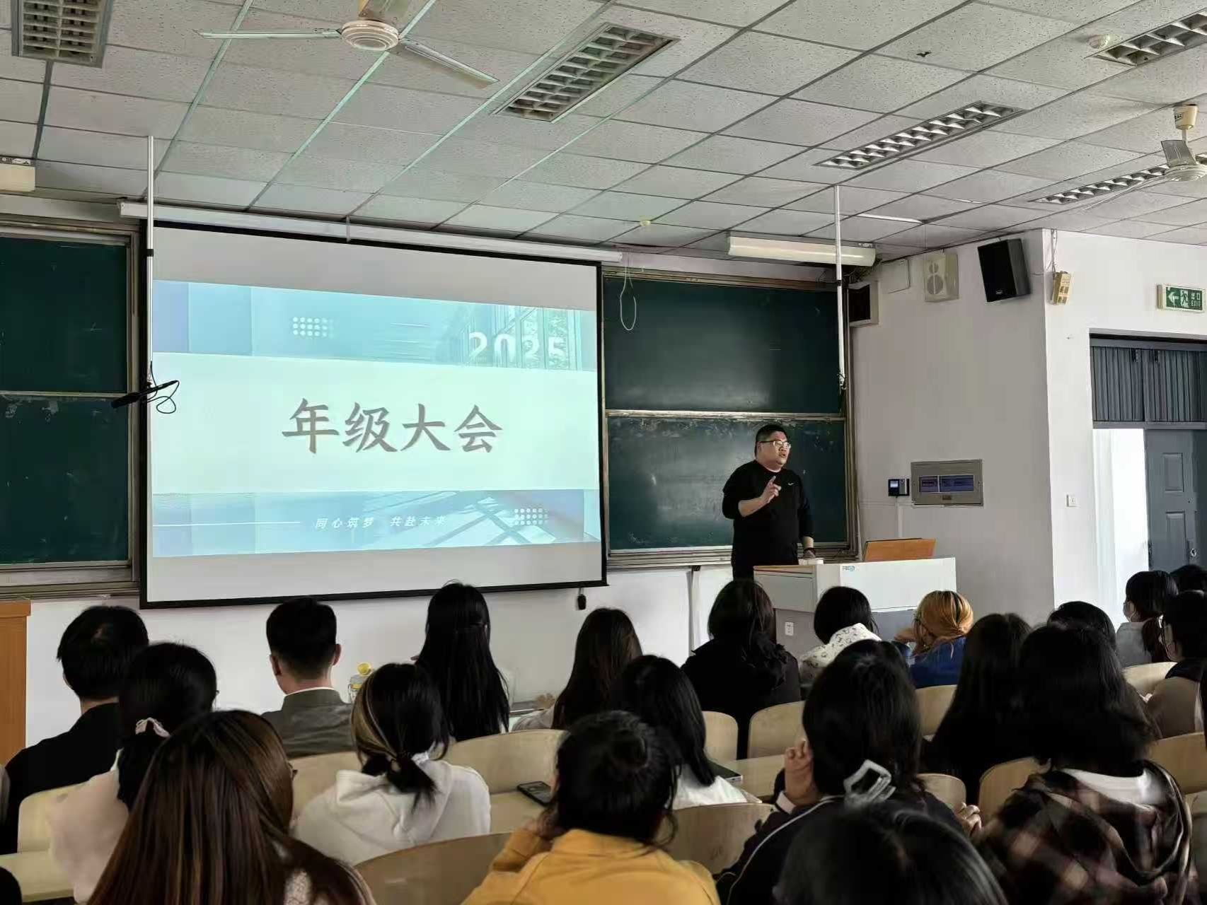 为加强学风建设,规范学生日常行为,4月15日至4月17日,我院各年级分别在第四教学楼4102、传习学堂召开年级大会。会议由院长助理陈亮及全体辅导员老师主讲,全体在校生参加。