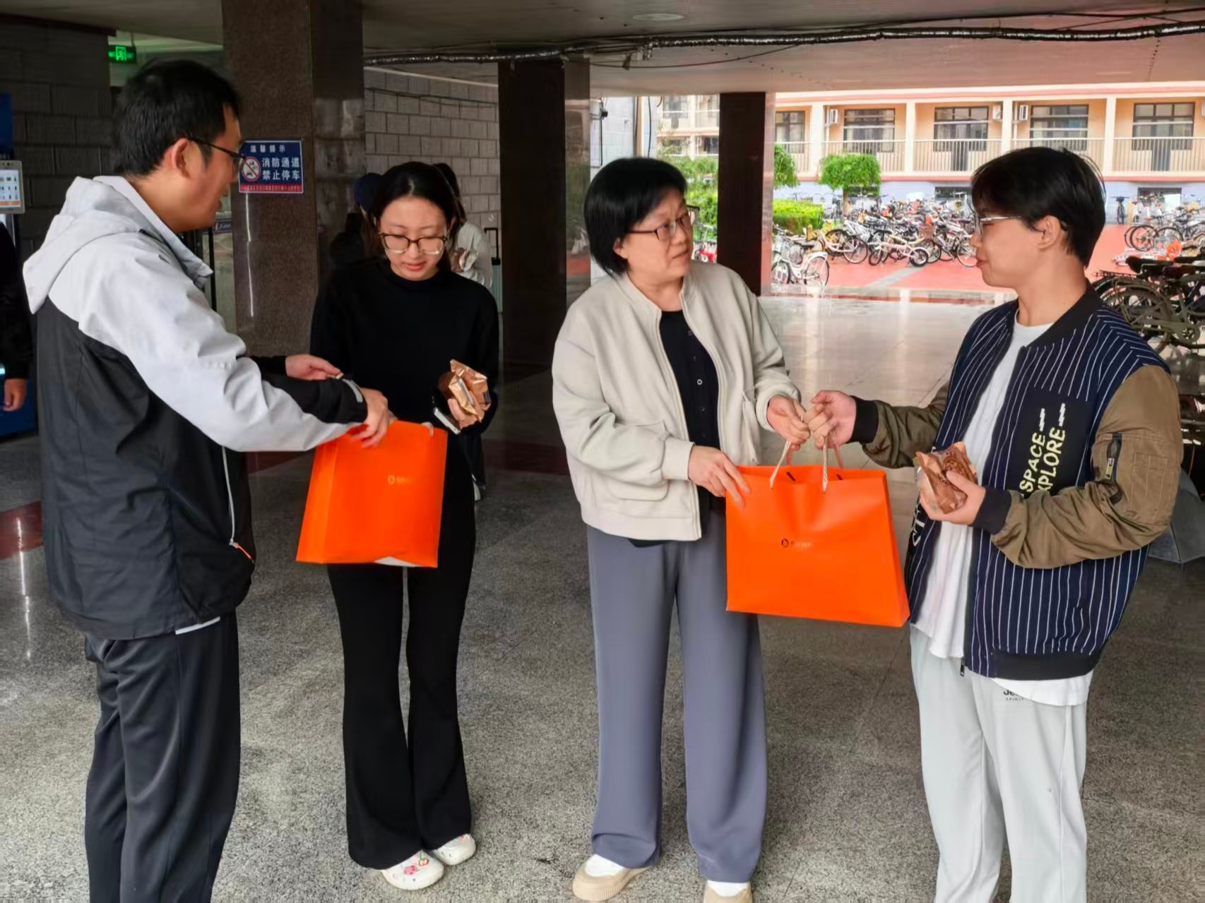 同学们接过老师们递来的月饼,脸上洋溢着幸福的笑容。他们纷纷表示,在这个特殊的中秋佳节,虽然没有与家人团聚,但学院领导和老师们的关怀让他们感受到了家一般的温暖,这份情谊将永远铭记在心。