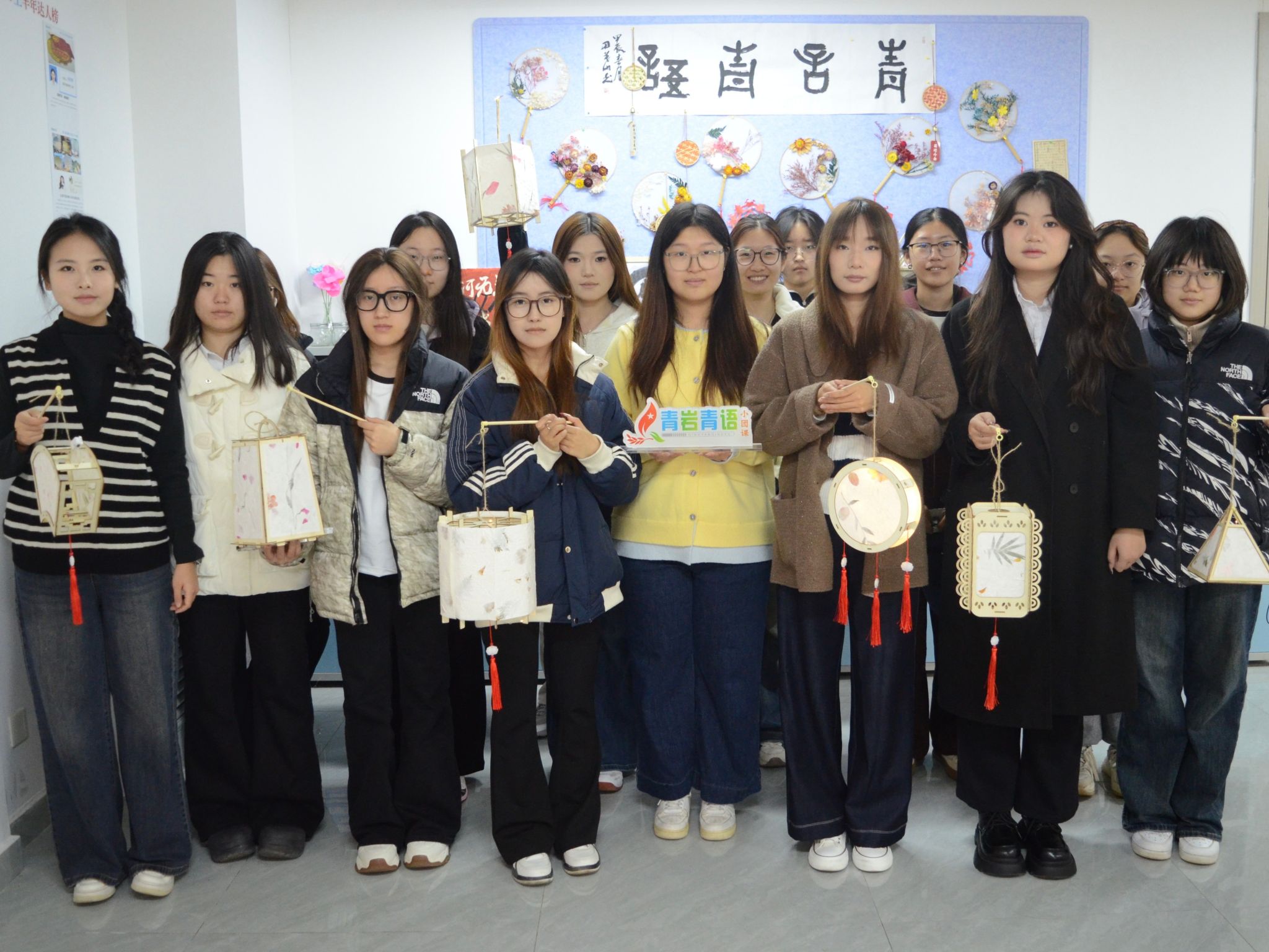 活动伊始,王靖惠围绕灯笼的历史文化渊源和制作方法向在场同学进行了详细介绍。从灯笼在古代节日中的璀璨登场,到其承载的吉祥寓意与美好祝愿;从传统灯笼的多样造型,到制作过程中的精妙技巧,每一个细节都讲解得丝丝入扣,让同学们对灯笼这一传统物件有了更为全面和深入的认识。制作过程中,同学们以小组为单位,巧妙结合主题,充分发挥想象力,胶水精准涂抹,流苏轻盈点缀,将现代审美与传统技艺相结合,十余盏造型不同的灯笼在同学们的手中逐渐成型。同学们在沉浸式的手工体验中,真切感受到了文化传承在当代所焕发出的独特价值与无限魅力。