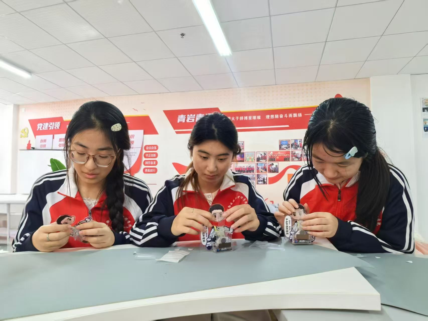 巴佳茹同学分享了她对校园反诈的深刻认知,并详细讲解了亚克力摇摇乐的结构特点、创作思路及制作要点。同学们取出透明外壳、“不听不信不转账”彩色亚克力碎片等配件,按示意图对齐卡扣,放入碎片后扣合壳体并按压牢固,摇晃测试调整碎片分布,一个个拼接牢固、警示清晰的摇摇乐作品顺利完成。