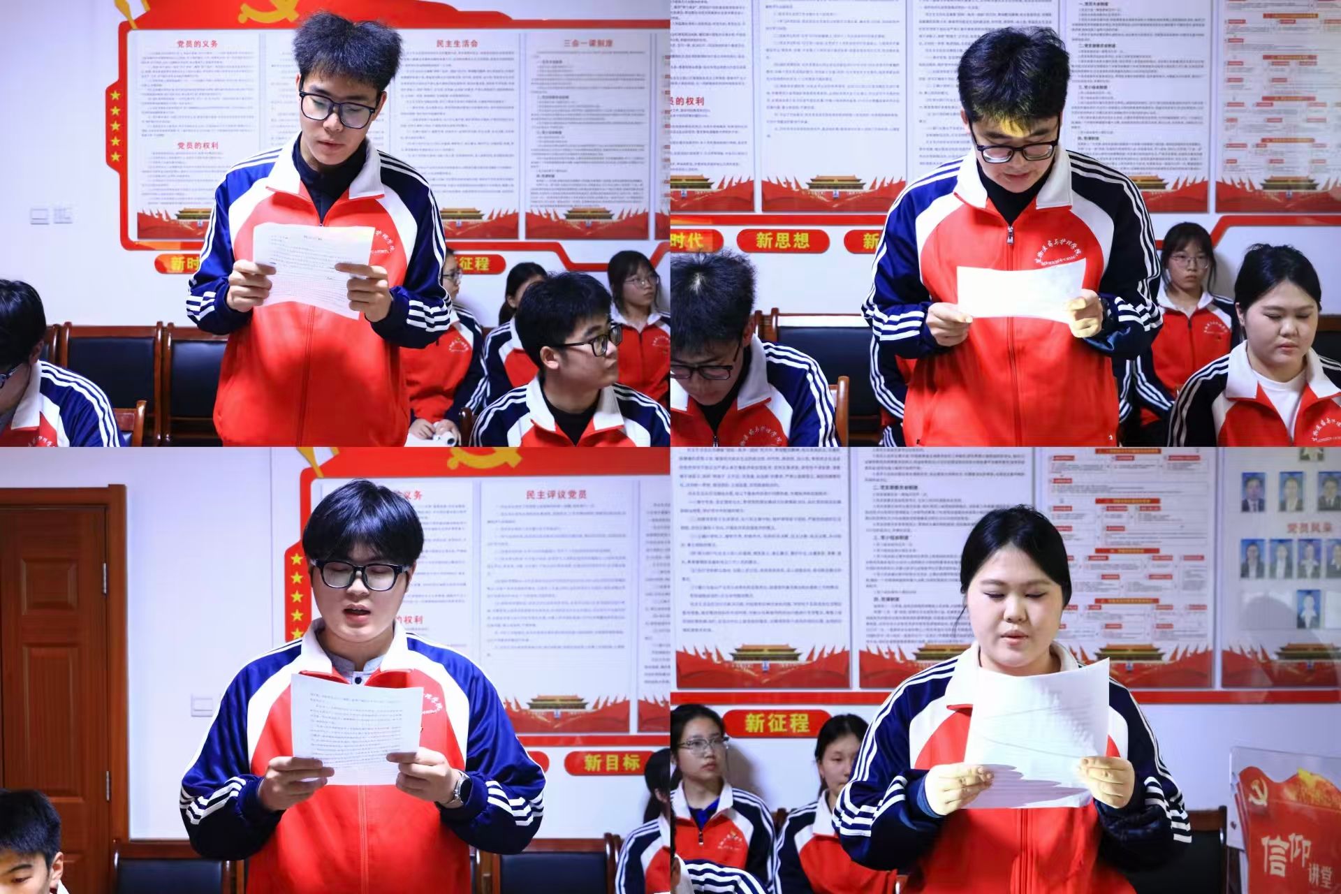 会上,矫宛纳等4名预备党员依次上台,针对本人预备期内的理论学习、学业成绩、社会实践等情况作转正汇报,详细阐述了自身在理想信念、党性修养和服务意识方面的成长与进步。随后,入党介绍人分别从4名预备党员的学习态度、工作表现、生活作风和群众基础等方面,客观介绍了4名预备党员的考察情况,并就转正事宜表明意见,为党组织了解预备党员情况提供了重要依据。