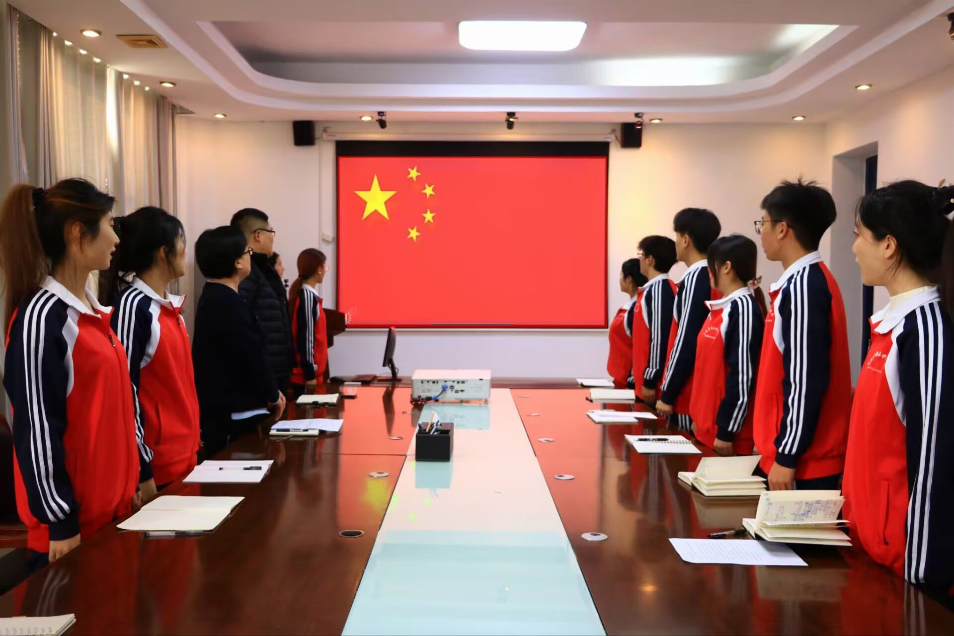 仪式在庄严的国歌声中拉开帷幕。姚新萌宣读了2025年下半年新发展团员名单。随后,殷丽、陈亮、姚新萌为新团员代表佩戴团徽、颁发团员证。在领誓人的带领下,16名新团员面向团旗庄严宣誓,表达了新团员对共青团组织的无限忠诚与为理想奋斗的坚定决心。
