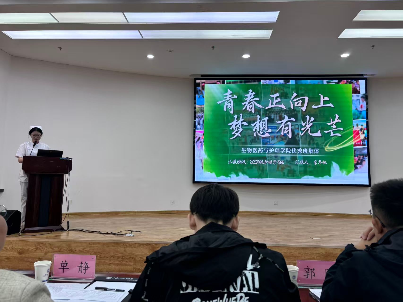 2024级护理学3班学生代表宫芊帆围绕班级管理、思想建设、学风建设、实践创新板块,重点呈现了青马工程建设、学业零挂科、优良率稳步提升等亮点,同时分享了学科竞赛参与情况,充分展现我院班级凝心聚力、勤学笃行的优良风貌。