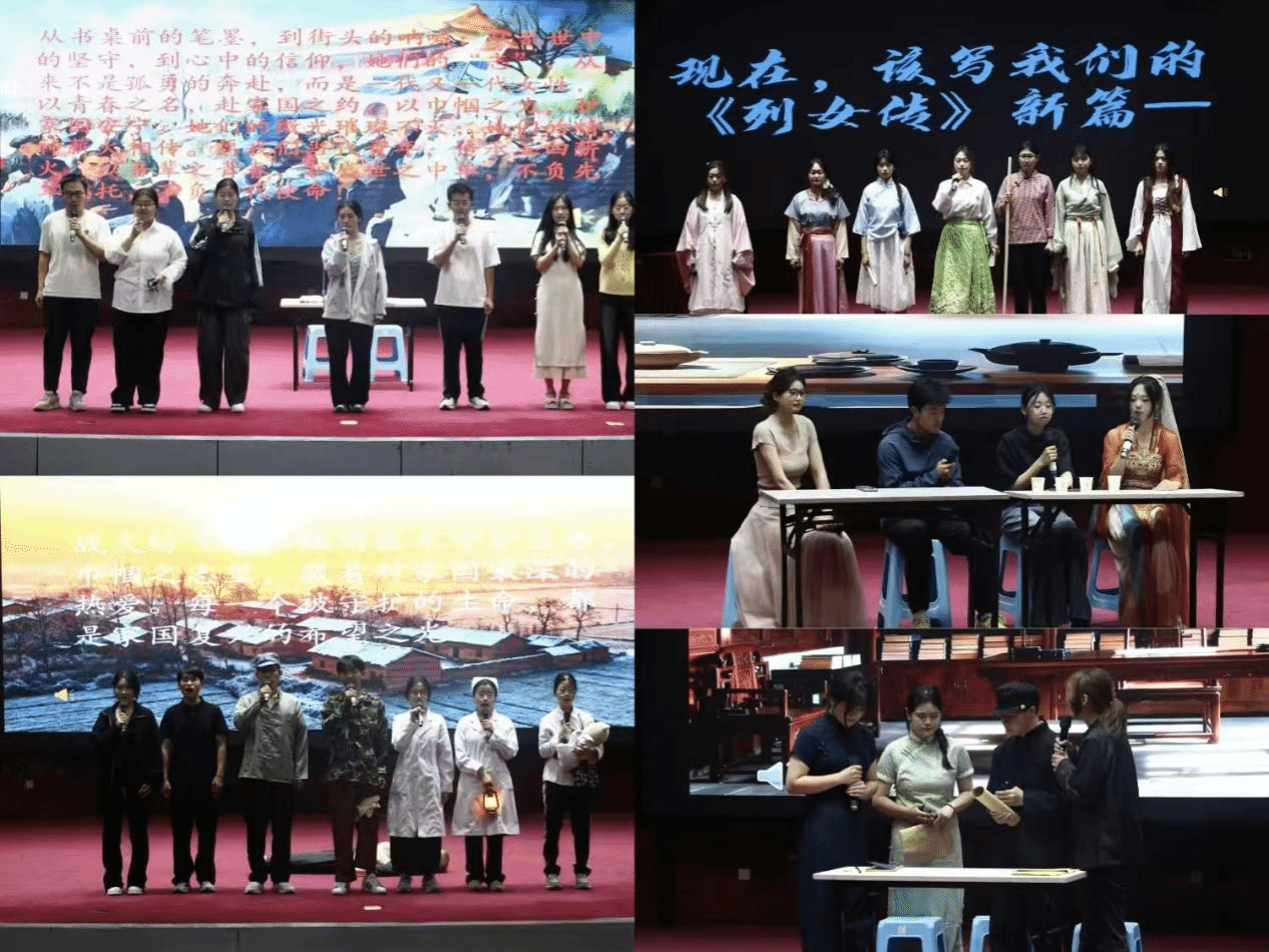 比赛现场,各参赛队伍依次登台,紧扣“巾帼志·家国魂”主题,以情景剧为载体,用真挚的情感、投入的表演,演绎不同年代女性的坚守与担当。从革命岁月的巾帼英烈,到平凡岗位的守护者,再到跨越时空的青春对话,同学们将家国情怀融入角色,生动诠释了新时代青年对五四精神的理解与践行。