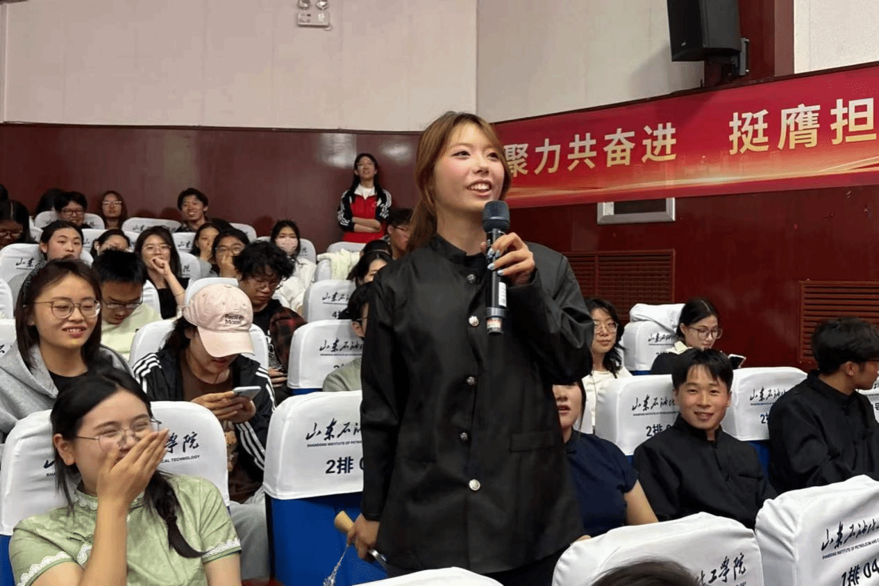 表演结束后,现场开展“析故事,辨名人”互动环节。主持人以杰出女性事迹为线索,引导观众竞猜历史名人与时代楷模,同学们踊跃参与,现场气氛热烈活跃。