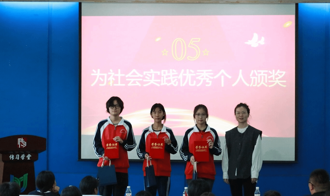 陈亮宣读表彰决定,授予张冰娴等27名同学“社会实践优秀个人”荣誉称号,授予5支社会实践团队“社会实践优秀团队”荣誉称号。学院领导老师分别为获奖同学及团队颁发证书奖品。