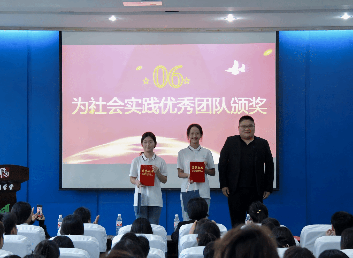 为表彰优秀个人和团队,激发更多学生积极参与社会实践,10月11日下午,我院在传习学堂举行2024年暑期优秀社会实践表彰大会。党总支副书记、副院长殷丽,副院长高亮、院长助理陈亮、学生工作办公室主任武利敏、护理系主任马翠翠、药学系主任孙玫、学生党支部书记王昊、团总支书记董庆民及2024级、2023级、2022级部分同学参加。