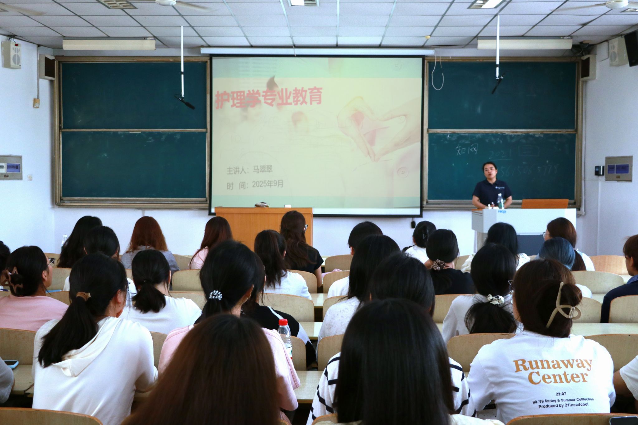 为助力2025级新生全面、深入地了解所学专业,清晰认知专业价值与发展方向,9月14日上午,我院在第四教学楼举行2025级新生专业教育。护理系主任马翠翠、药学系主任孙玫老师主讲,2025级全体新生参加。