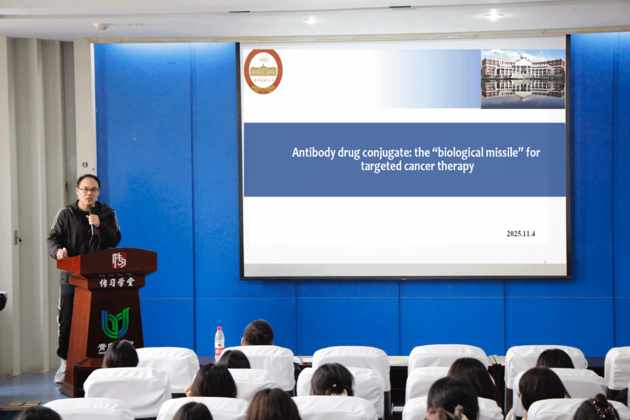 刘涛博士以“精准靶向,智击癌症”为主题,围绕抗体—药物偶联物(ADC)在癌症治疗中的应用展开深入讲解。他详细梳理了抗体—药物偶联物(ADC)的发展历程和作用机理,介绍了现代研究在提升抗体—药物偶联物(ADC)疗效与降低副作用方面的最新进展,讨论了抗体—药物偶联物(ADC)下一代开发的当前挑战和未来前景,让同学们对这一前沿领域有了全面且深入的认识。
