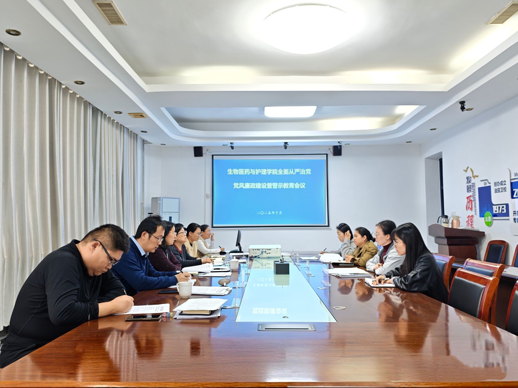 为深入学习贯彻习近平总书记重要指示精神,锲而不舍落实中央八项规定精神,推进作风建设常态化长效化,扎实做好学院全面从严治党和党风廉政建设工作,10月28日下午,生物医药与护理学院在东配楼3003会议室召开全面从严治党、党风廉政建设暨警示教育会议。学校党委委员、副校长吕宏凌列席指导,学院党委书记殷丽主持会议,学院领导班子成员及相关负责人出席会议。