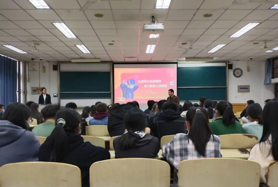 赵萍副护士长今年2月赴湖北黄冈大别山区域医疗中心参与新冠肺炎治疗工作。在交流分享中,她回顾了在抗疫一线的经历和心路历程。“治病救人是初心,抗击疫情是使命”,作为重症监护室护士,要用职业道德和专业素养去帮助新冠肺炎患者脱离危险,战胜病毒。面对大学生,她指出,“你们是祖国的未来,是祖国的后浪,人生漫漫长路,你们将会经历无数次的考试,就如同这次疫情的大考一般,希望你们都能够交出一份让自己满意的答卷,希望你们在人生旅途中要坚持学习,要勇于担当,要牢记责任,更要学会感恩,感恩身边帮助你的每一个人。”