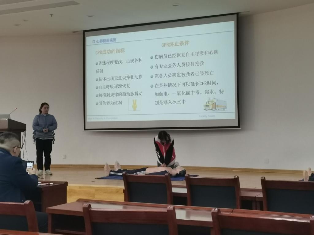 讲座先介绍了现代急救理念,并对生活中常见急症和公共场所易发生的意外事故现场紧急处理进行了分享,包括哮喘、心绞痛、急性心梗、癫痫发作、创伤、心搏骤停和气道异物梗阻。最后实践环节,参与讲座的老师同学生,针对CPR复苏术进行了演练,现场气氛热烈。