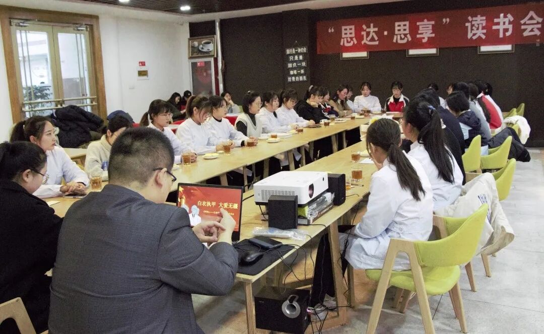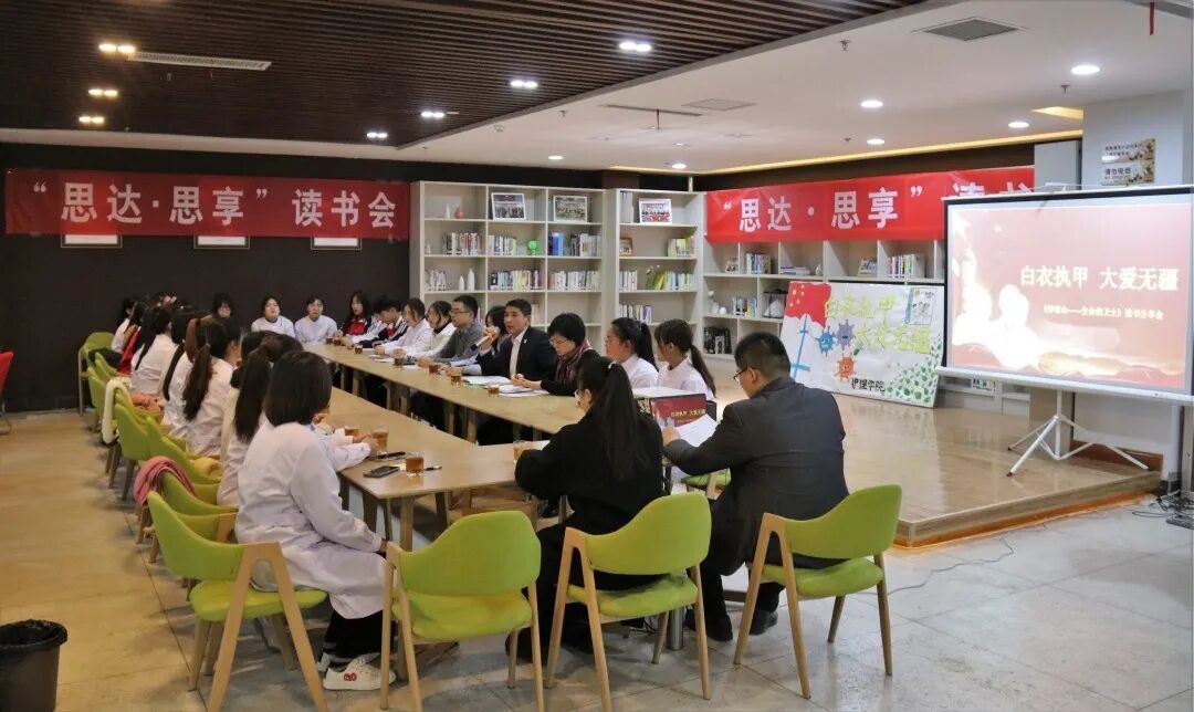 12月15日下午,学校图书馆与我学院共同举办的“思达·思享”读书会在图书馆咖啡厅举行,本期图书会的共读书目是《钟南山——生命的卫士》。胜利油田中心医院工会副主席袁帅,急诊科副护士长苟田田受邀参加。学校图书馆馆长沙斌,我院党总支书记殷丽出席。陈晓老师担任本期读书会主持人。