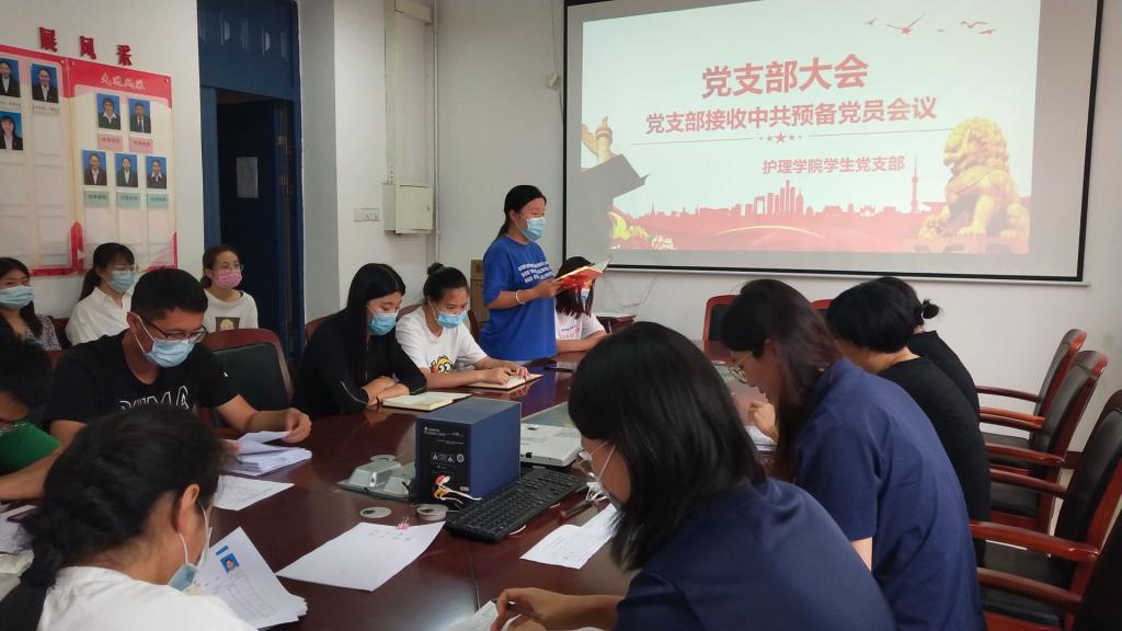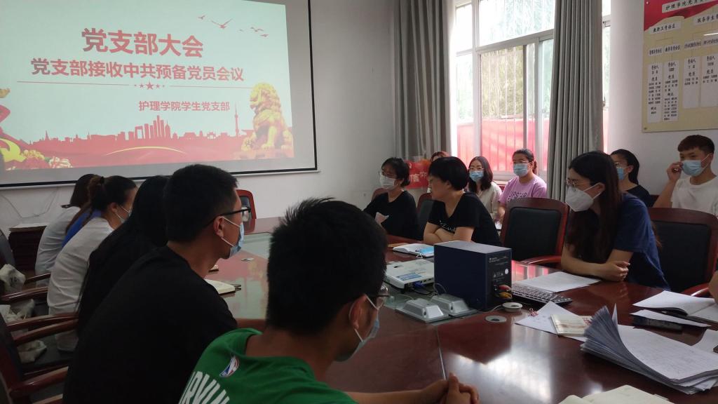 为壮大支部党员队伍,为党组织汇入新鲜血液,6月12日,我院学生党支部于党员活动室召开支部大会,议题为“接收麻慧慧等四名发展对象为中共预备党员”。会议由学生党支部书记李文欣主持,党总支书记殷丽与会指导工作,徐红、马翠翠、李春华、李文欣、王昊老师,部分学生党员及17名发展对象列席会议。