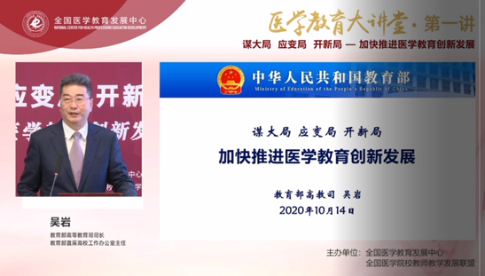 本次医学教育讲座是由全国医学教育发展中心、全国医学院校教师教学发展联盟联合举办,吴岩司长的报告是医学教育大讲堂的第一讲,全国近16万人进行了收看。