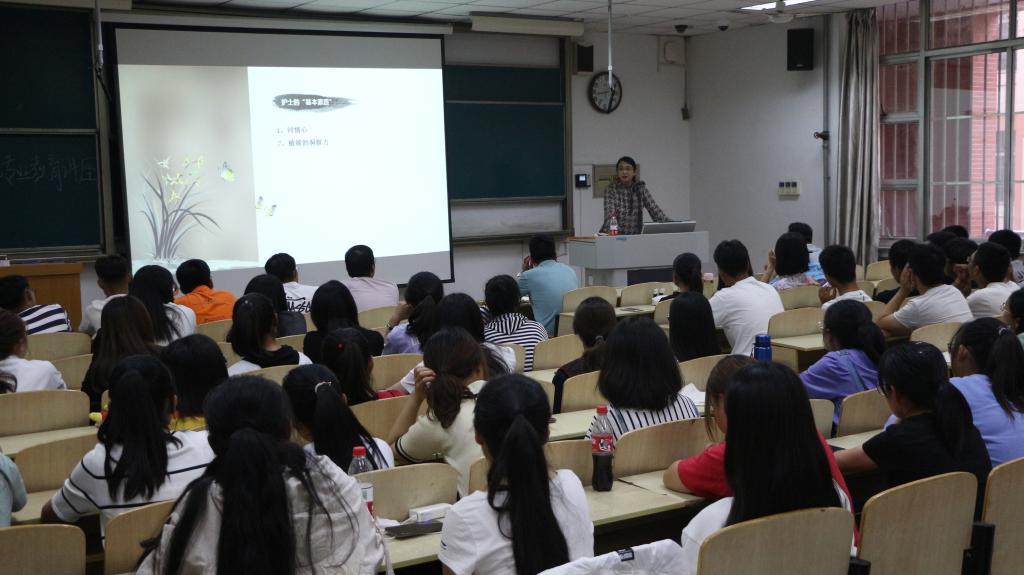 会议伊始,赵森院长首先代表王护士长向大家作出简单的自我介绍;随后,王护士长分别从我的成长经历、我的目标与价值和你的成长经历规划三方面,多角度多方位的与大家交谈。此外,她通过视频及讲述自己在医院所获得的成就来提醒同学们有好的平台才有好的出入,如成立糖友俱乐部,各种院内院外的实践活动等。其间,她着重强调基础知识与人际沟通的重要性,应珍惜学习的时光。最后,赵森院长发表感想:一、人际沟通在生活中很重要,学会沟通能提高情商;二、对于学习要有自己的学习规划和追求;三、作为护士应融入到这个神圣的职业中。
