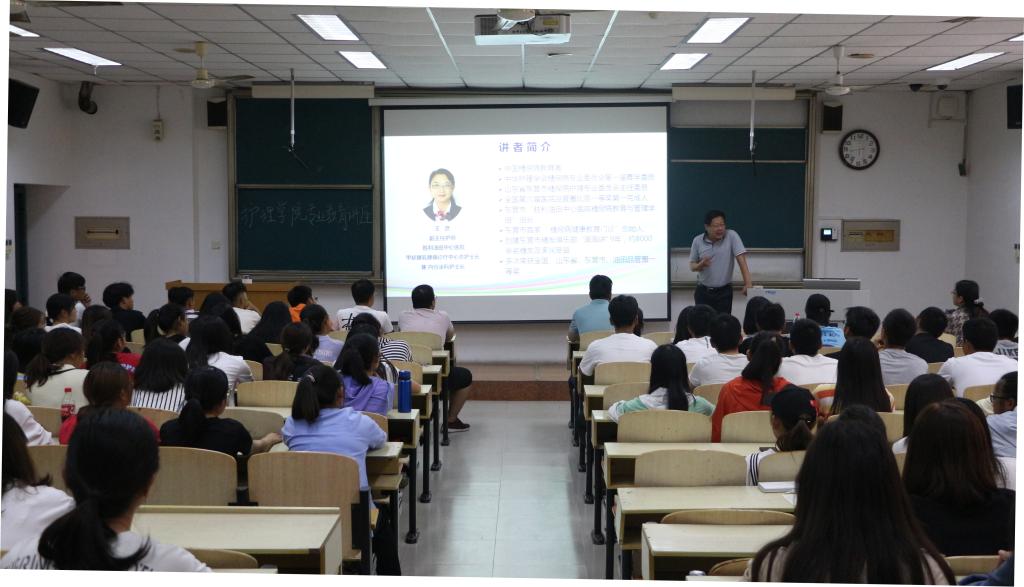为使新同学们增强护理专业认同度。9月29日下午,特邀胜利油田中心医院的护士长王彦来我院四教106教室开展专业教育座谈会。执行院长赵森、19级辅导员王昊参加此次会议,由赵森院长主持。