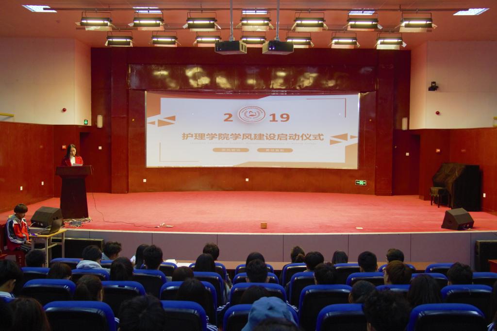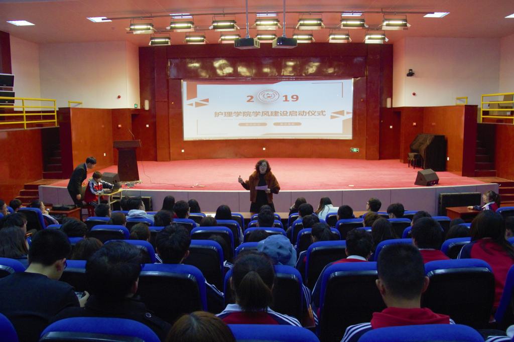为树立良好的学习风气,增强学生学习积极性、主动性和创造性,提高育人质量。3月11日晚,护理学院于小音乐厅举行2019年学风建设系列活动启动仪式。护理学院党总支书记姚梅、学工办主任于淼、各级辅导员、班主任及17、18级全体班委共计100余人参加仪式。团总支书记武利敏主持仪式。
