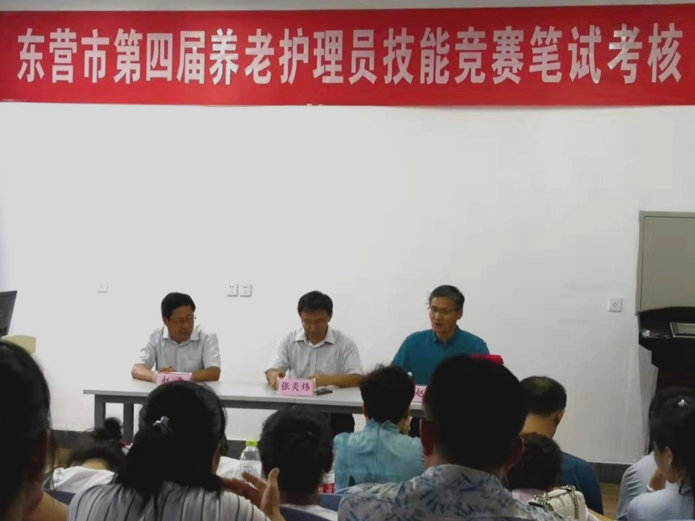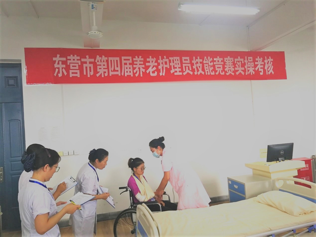 8月9日下午,由东营市民政局主办、我院承办的东营市第四届养老护理员技能竞赛在我院举行,东营市民政局张炎炜副局长、养老服务与儿童福利科赵国际主任、我院赵森院长共同观摩比赛并为获奖选手颁奖。