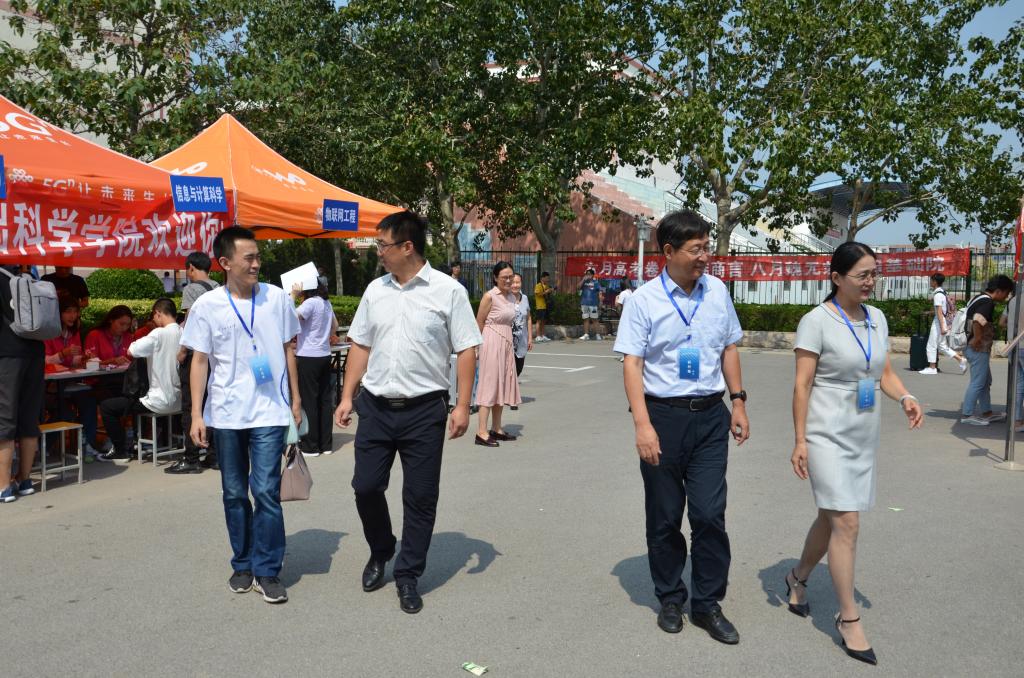 迎新工作受到了学校领导和学院领导的高度重视。院长刘衍聪,党委书记孙学斋,党委副书记孟昭亮,副院长徐月利,副院长王晓勇,学生工作处处长孙洪亮,安全保卫处处长张魏等领导亲临我院迎新现场慰问工作人员,我院领导老师也来到迎新现场,指导迎新工作,鼓励工作人员为新生及家长提供更有效的帮助,保证迎新工作顺利进行,并与新生及家长亲切沟通,勉励新同学。