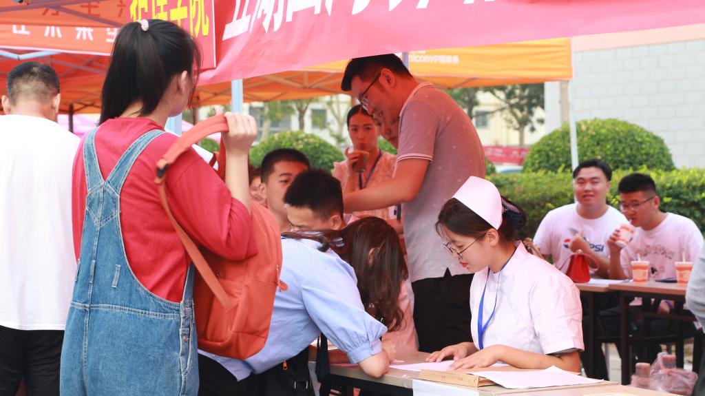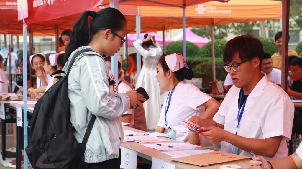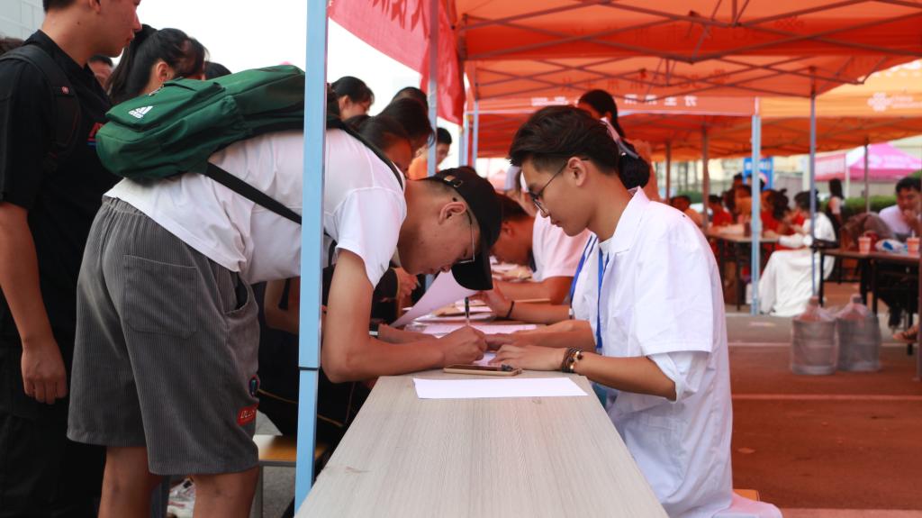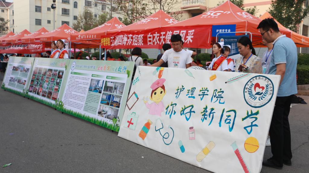 9日上午6时许,所有迎新人员到达工作岗位,礼仪队身穿护士服,手举宣传牌,以饱满的精神状态迎接新生们的到来。负责引导的同学,将同学们带向报到地点,搬运组整装待命,协助行李搬运。他们忙碌的身影在咨询台、教学楼、校园餐厅、宿舍区随处可见。他们无微不至的关怀让每一位学生和家长倍感亲切。