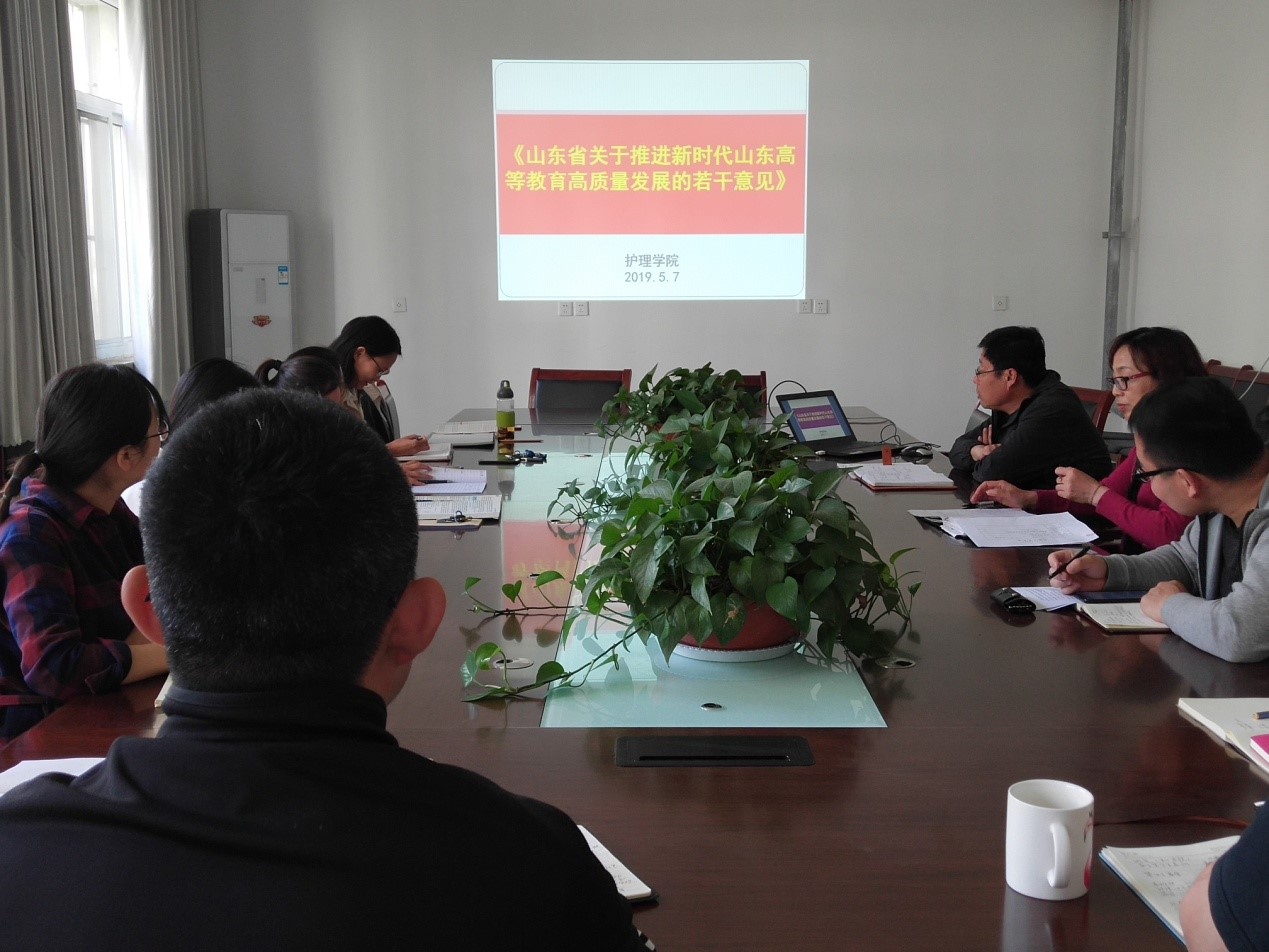 5月7日下午,我院召开教师座谈会暨学习《山东省关于推进新时代山东高等教育质量发展的若干意见》,执行院长赵森、党总支书记姚梅及全体教师参加会议。